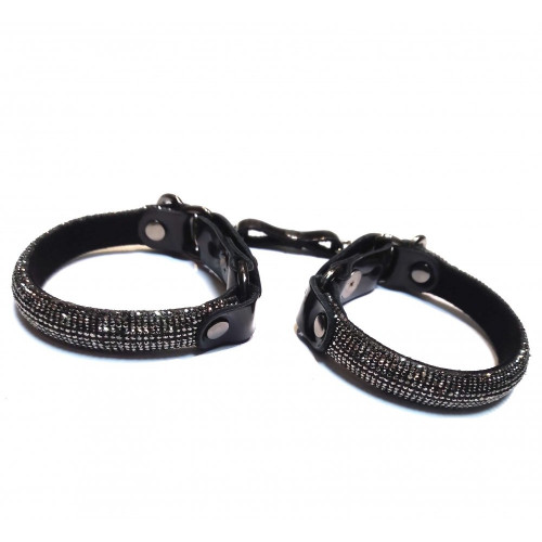 Роскошные черные наручники из натуральной кожи от Ситабелла помогут ограничить движения секс-партнёра, достаточно лишь одеть на запястья комфортный, но прочный девайс. Изделие декорировано по всей длине капельным серебром. Размер легко регулируется при помощи металлической пряжки. Соединяются наручники при помощи небольших карабинов, скреплённых кожаной перемычкой. Вся металлическая фурнитура имеет никелевое покрытие. Размер: общая длина около 20 см, ширина 1,2 см.