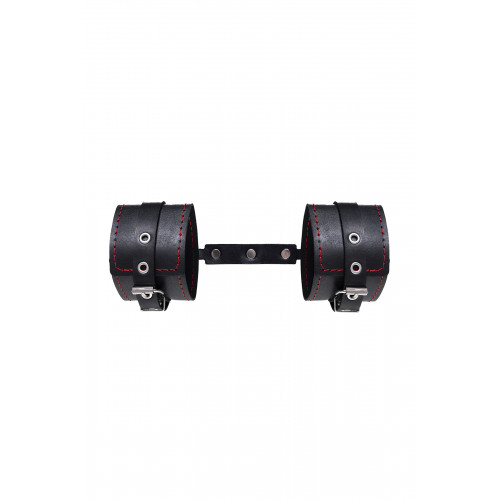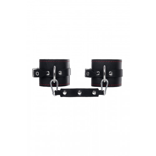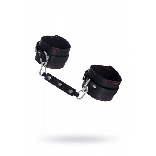 Готовы играть по-взрослому? Не бойтесь своих желаний! Основатели бренда уверены: лучший способ избавиться от искушения - поддаться ему! Эти однослойные кожаные оковы с контрастной строчкой красного цвета могут стать стильным аксессуаром, а могут послужить вашим целям по своему прямому назначению. Частичное обездвиживание и невозможность двигать руками или ногами дают вам полную власть над партнером – взрослые игры для взрослых. Наличие двух колец и карабинов, соединенных между собой кожаным ремешком, позволяет использовать изделие как раздельно – аксессуар-манжеты, так и как оковы для фиксации. К широким металлическим кольцам также можно присоединить и другие аксессуары при помощи карабинов. Благодаря универсальному размеру оковы могут использоваться и мужчинами, и женщинами. Размер легко регулируется с помощью металлических пряжек, органично вписывающихся в общий стиль. Ширина манжет 6,5 см, длина манжет 25 см.
