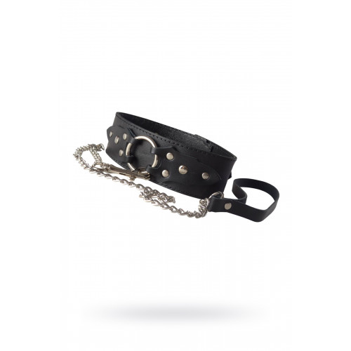 Кожаный ошейник в готическом стиле от Sitabella – это строгий и лаконичный аксессуар BDSM, способный вызвать эмоционально-сексуальное возбуждение, лишь своим нахождением на теле секс-партнёра. Чёрный ошейник из толстой натуральной кожи, ширина которого составляет 4,8 см, имеет внутреннюю подкладу из тонкой кожи. Так как ошейник достаточно широкий, хорошо просматривается текстура натуральной кожи, в виде мелкой паутинки. Декоративным элементом данного аксессуара, является металлическое кольцо, удерживаемое двумя кожаными узорчатыми накладка, оно также используется для присоединения поводка-цепочки к ошейнику. Длина поводка-цепочки 85 см. Размер изделия регулируется металлической пряжкой.Размер: общая длина ошейника 42 см, ширина 4,8 см. Цвет черный.