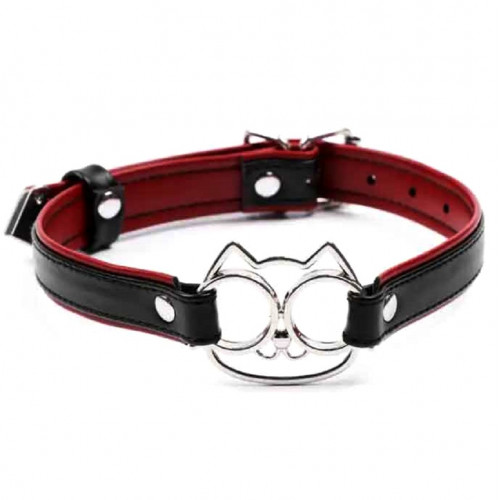 Чокер декорированный металлической кошечкой. Имеет возможность регулировки размера с помощью ремешков. Длина чокера 52 см, ширина - 2 см. Цвет черный и красный.