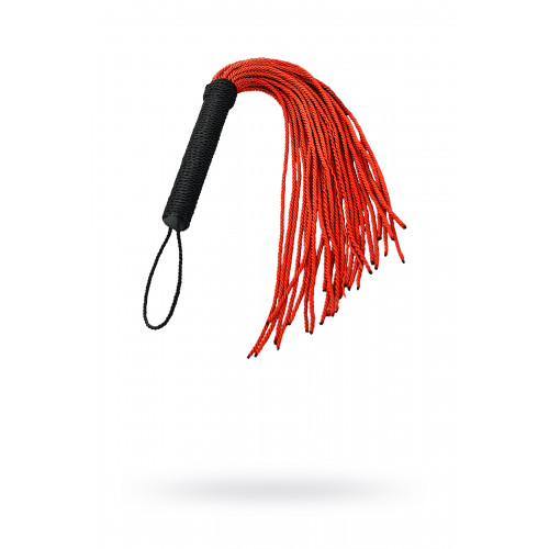 Самый безопасны для нежной попки.Веревочный флоггер с красными хвостами и черной плетеной ручкой мягко разогревает кожу и готовит к более серьезным воздействиям.