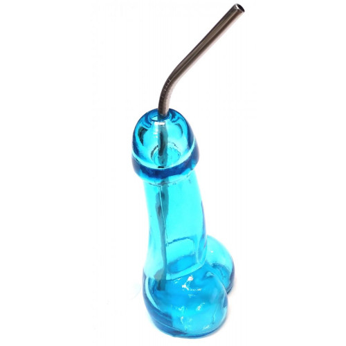 Бокал голубой в форме пениса 110 мл воронка и трубочка