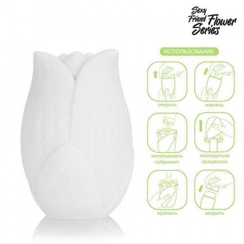 Белый нереалистичный мастурбатор в форме бутона цветка Lotus