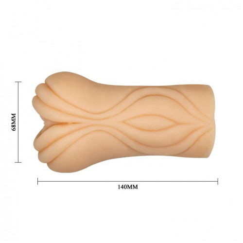 Телесный мастурбатор-вагина Louise. Вход в тоннель окружен пышными складкам. Тоннель рельефный, тугой, эластичный.
