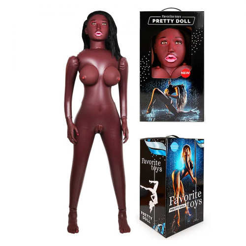 Темнокожая надувная секс-кукла с вибрацией Лионелла. 3 любовных отверстия - вагина, анус, рот. Виброэлемент с проводным пультом управления.