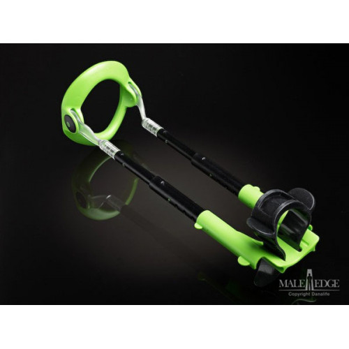 Для надевания Male Edge не понадобится много времени. Сначала следует отсоединить платформу от стержней и ввести пенис в упорное кольцо так, чтобы оно оказалось у самого его основания. Затем сдвинуть крайнюю плоть и на это место надеть смягчающую подушку, а затем и ремешок-фиксатор. После необходимо отрегулировать длину стержней, выворачивая их по часовой стрелке, и защёлкнуть платформу.