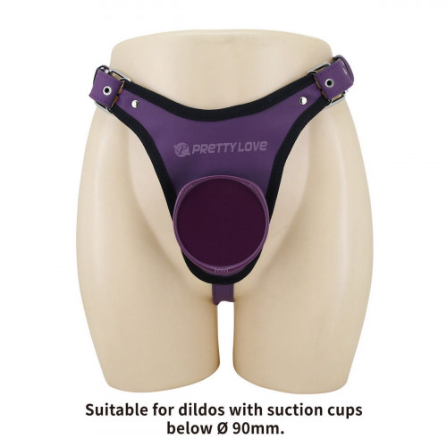 Фиолетовые трусики харнесс с платформой Caludio III. На платформу можно прикрепить фаллоимитатор или вибратор с присоской до 9 см в диаметре. Трусики регулируются по размеру пряжками: от 61 до 127 см в обхвате.