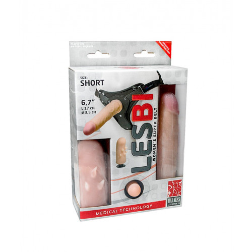 В комплект входят пояс-трусики и пара насадок. Это - отличная альтернатива для двухголовых фаллоимитаторов. Конструкция трусиков такова, что позволяет использовать абсолютно любые насадки, которые легко крепятся при помощи штырьков, входящих в комплект. Внутренняя поверхность трусиков мякгая, не имеет швов, легко регулирутся по размеру - что немаловажно. Два отверстия: одно внешнее - для любых насадок, на которые только способна ваша фантазия, второе - внутреннее, для вагинального проникновения хозяйки трусиков. В данном комплекте две насадки разных размеров и формы. Фаллоимитатор в виде члена с ярко-выраженной головкой и венами длиной 17 см и диаметром 3,5 см выполнен из мягкой киберкожи. Вторая насадка имеет эргономичную компактную форму, идеально подходящуюю для роли вагинального отростка: немного загнутую головку и гладкую поверхностьс шипиками для дополнительной стимуляции. Размер: длина 10 см, диаметр 3,5 см. Рекомендуем смазку на водной основе.