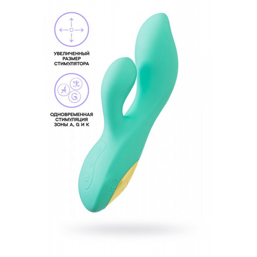 Стильный мятно-золотой влагостойкий вибратор с двойной стимуляцией Vivian создан специально для ярких оргазмов. С ним Ты не только поэкспериментируешь с размерами и новыми ощущениями, но и осуществишь свои эротические фантазии с комфортом и безопасно. Бархатистый медицинский силикон подарит нежность от прикосновений, а низкочастотная вибрация обеспечит бесшумную работу девайса и растянет Твое наслаждение. 12 вариантов вибраций выбираются нажатием кнопок, и Ты в любой момент можешь легко сменить режим. Выдающаяся основная часть вибратора имеет отдельный мотор и удобную форму в виде языка, что важно для приятного начала знакомства с ним. Объемный отросток для клиторальной стимуляции со вторым мотором подойдет под индивидуальные анатомические особенности и подарит незабываемые ощущения. Для более комфортного использования рекомендуем приобрести смазку на водной основе и очищающий спрей Clear Toy 100 мл для обработки изделия.