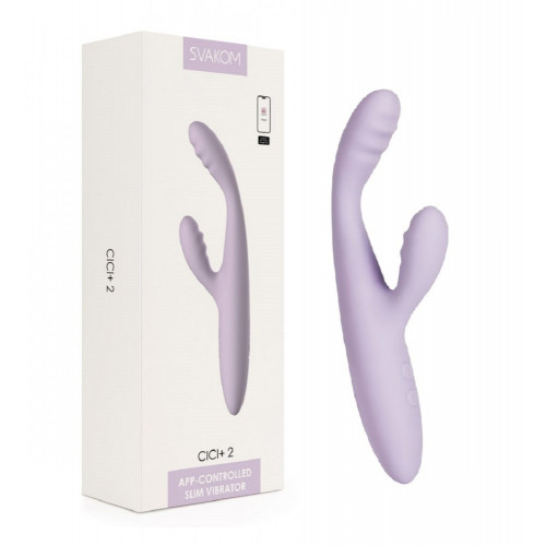 Cici+ 2 Интерактивный вибростимулятор-кролик с функцией нагрева от SVAKOM. 5 уровней вибрации, 5 уровней интенсивности и нагрев до 38 C градусов все для усиления вашего возбуждения. Наслаждайтесь смешанным вагинальным и клиторальным оргазмами в ультратонком корпусе. Размер: длина 17,8 см, рабочая длина 9 см, диаметр 2 см, длина клиторального стимулятора 6,3 см. Цвет лиловый. Для более комфортного использования рекомендуем приобрести смазку на водной основе и очищающий спрей Clear Toy 100 мл для обработки изделия.