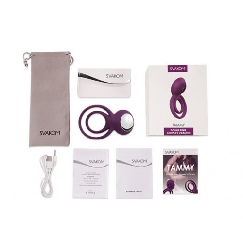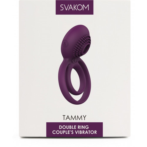Фиолетовое эрекционное виброкольцо Tammy с подхватом мошонки