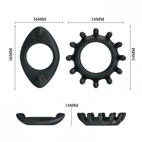 Набор эрекционных колец черного цвета для дополнительной стимуляции. Эластичные, легко растягиваются до необходимого размера. Эта маленькая изюминка поможет украсить сексуальную жизнь - усилить эрекцию и сделать половой акт более продолжительным. Внутренний диаметр колец - 2,5 и 2,7 см.