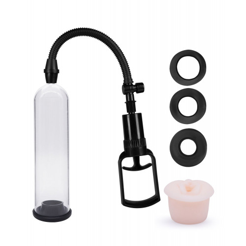 Разработанная для усиления эрекции и увеличения ее продолжительности вакуумная помпа создает оптимальное давление, а прочная прозрачная колба позволяет контролировать процесс. Удобная система сброса воздуха, управляемая одним нажатием кнопки, обеспечивает безопасность и комфорт во время использования. В комплекте четыре сменные насадки из мягкого TPE, каждая с разным диаметром, что позволяет индивидуально подобрать плотность прилегания. Одна из насадок выполнена в реалистичном дизайне, что дает возможность использовать устройство как мастурбатор, добавляя еще больше удовольствия. Длина колбы – 20,5 см, рабочая длина – 18,5 см, внутренний диаметр – 5,8 см.