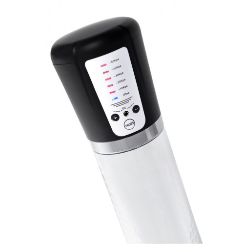 После сброса давления кнопкой Valves умное устройство само откачает воздух до заданного режима, остановится, и будет держать заданный уровень. Благодаря отрицательному давлению увеличивается приток крови к половому члену. Прозрачный ABS-пластик позволяет наблюдать как пенис набирает силу и увеличивается в размере. А измерительная шкала помогает отслеживать результаты прямо в процессе.