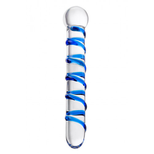Качественная втулка из прозрачного стекла покрытая спиралью желобков, окрашенных синим цветом. Кольцо-шар для более комфортного использования. Минимальный диаметр - 2,5 см.