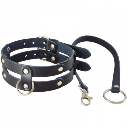 Кожаный ошейник Sitabella – это строгий и лаконичный аксессуар BDSM, способный вызвать эмоционально-сексуальное возбуждение, лишь своим нахождением на теле секс-партнёра. Ошейник изготовлен из натуральной кожи темно-синего цвета из двух полосок кожи сопряженных между собой перемычками, декорирован металлическими клепками. Небольшой поводок с карабином и кольцом. При изготовлении использована никелированная фурнитура. Размер изделия регулируется металлическими пряжками. Цвет темно синий. Размер: длина изделия 40 см, ширина ремешков 1,5 см, общая ширина 4 см, длина поводка 36 см.