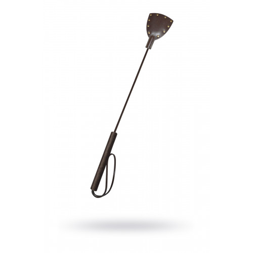 Стек из серии Готика представлен в виде роскошного, изящного изделия цвета темного шоколада. Основательная хлопушка стека изготовлена из натуральной кожи высокого качества и украшена большим количеством клёпок. Хлопушку и рукоять соединяет упругий, но прочный хлыст. Комфортное использование девайса обеспечивает бархатистая рукоять, покрытая велюровой тканью. Ремешок-петля, находящийся на рукояти, позволяет дополнительно фиксировать стек на запястье. Цвет: коричневый. Общая длина 65 см.