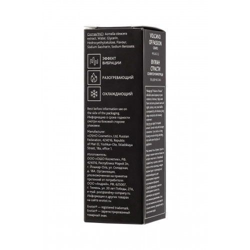 Массажный гель «Вулкан страсти» придаст вашим моментам близости особую пикантность. Волшебный сладкий вкус и аромат, приятное тепло и лёгкая прохлада, каждое касание будет сопровождаться мягкой вибрацией, даря неповторимые ощущения и усиливая возбуждение. Нанесите немного жидкого геля на интимные зоны, и через несколько секунд вы почувствуете тепло, затем в течение 2-3 минут легкую вибрацию и легкий холодок. Длительность эффекта зависит от особенностей вашего организма. Гель с вибрирующим эффектом для интимных зон на основе натуральных ингредиентов, без парабенов. Вкус и аромат винограда. Подходит для поцелуев и орального секса.