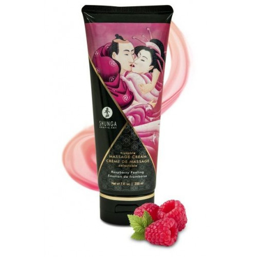 Массажный крем для тела с изысканным ароматом малины. Съедобный, не содержит сахара. Дарит коже гладкость и увлажнение, обеспечивает длительное скольжение. Нежирный, дарит ощущение свежести, превращает тело партнёра в лакомство.