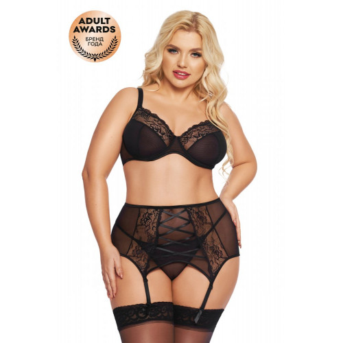 Комплект Dolores: бюстгальтер, стринги и пояс для чулок черный XL