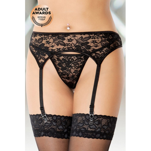 Кружевной пояс для чулок и стринги. Цвет: черный. Размер: S/M.