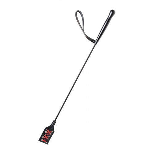 Порка – одно из наиболее частых наказаний в ролевых играх на тему воспитания. И если Вы испытываете наслаждение от такого рода сексуальных игр, так пусть это будет красиво и с роскошью, чтобы удовольствие захлестнуло не только от жгучего тактильного контакта ударными, но и от внешнего вида предмета. Стек от Sitabella– это девайс при помощи которого вы сможете осуществить любые сексуальные фантазии, будь то наказание, порка, психологическое доминирование и т.д. Длинный и умеренно гибкий стек приятно держать в руках, ощущая прилив возбуждения от собственной власти над партнёром. Девайс можно использовать как указку, управлять боттомом на расстоянии. Хлопушка стека выполнена из натуральной высококачественной кожи черного цвета и украшена переплетом из красной лаковой кожи. Ручка изготовлена из дерева и имеете удобную эргономичную форму. Гибкий хлыст, соединяющий хлопушку и рукоять, выполнен из прочного углепластика и имеет нейлоновое плетёное покрытие. Около рукояти имеется ремешок-петля для фиксации.