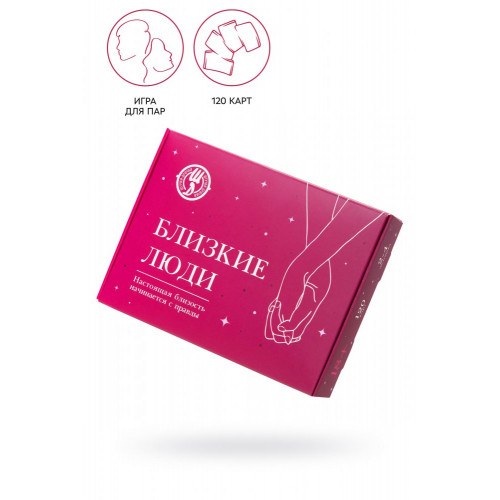 Игра Близкие люди - о искренности и настоящей близости. С помощью нее вы не только приятно проведете время и повеселитесь, но и укрепите отношения в паре! Как? Обсуждая важные вопросы личной, интимной и бытовой жизни, в форме игрового диалога по душам. 120 карт с заданиями, разбитых на две категории Расскажи и Угадай позволят раскрепоститься и довериться друг другу, ответить на самые сложные вопросы и обрести столь желанную гармонию в ваши отношениях. Правила:  Участники играют парами от 2 до 4 человек. После определения очередности хода, первый игрок вытягивает по одной карте из каждой колоды Расскажи и Угадай. Колода Расскажи: игрок отвечает на вопрос, указанный в карте, о себе. Колода Угадай: игрок отвечает на вопрос, указанный в карте, о партнере и старается правильно угадать. Карты Личная жизнь помогут узнать о взрослении партнера, становлении его/ее личности, жизненных целях и мечтах. Карты Интимная жизнь помогут узнать об фантазиях и скрытых желаниях партнера.