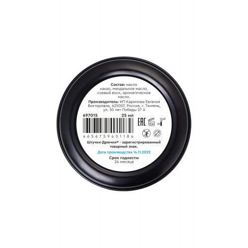 | Характеристики | КофеМасло какао, миндальное масло, соевый воск, аромамасло. |