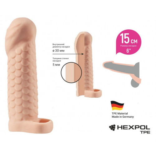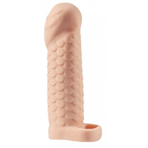 Телесная рельефная насадка-удлинитель KLEON с подхватом - 15 см.