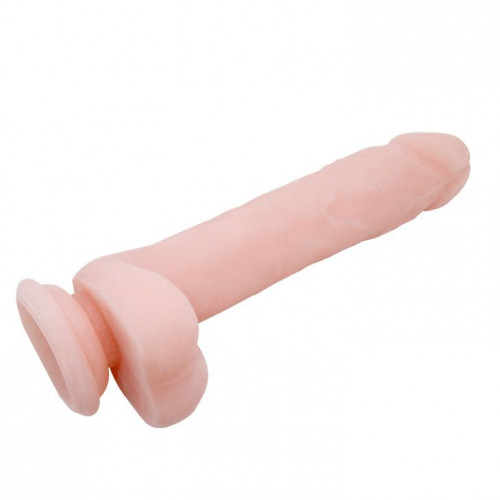 Фаллоимитатор с мошонкой на присоске. Упругий и приятный на ощупь.