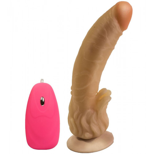 Телесный вибратор-реалистик на присоске с проводным пультом - 18,5 см.