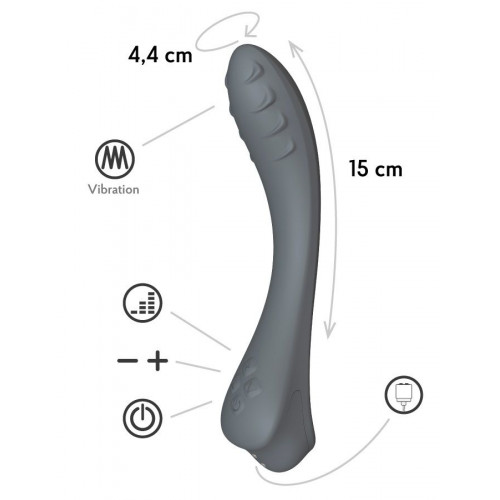 Темно-серый вибратор для G-точки Apus - 19 см.