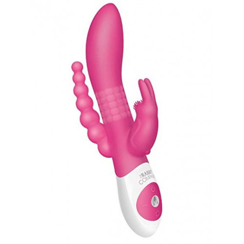 Розовый массажер-кролик для двойного проникновения с вращающимися шариками. Вибраторо создан для стимуляции сразу 3 чувствительных зон - клитора, g-точки и анальной зоны.