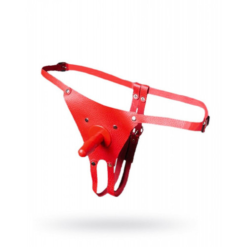Изготовлены из натуральной кожи. При производстве используется никелированная фурнитура. Размер регулируется ремешками, которые крепятся на бёдрах. от 42 до 50 размера. В комплект входит съёмный пластиковый плаг для насадок длиной 6,8 см. Идеально подходит для использования, как мужчиной, так и женщиной. Цвет: красный.