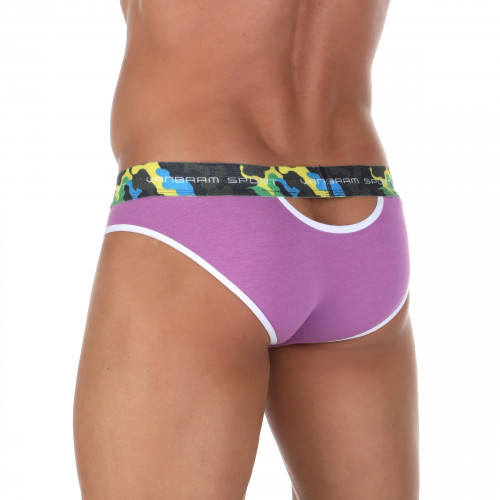 Сиреневые мужские трусы-слипы с пикантными вырезами под поясом
