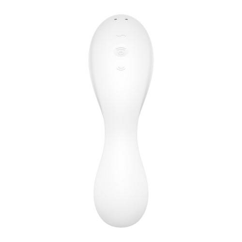 Инновационный вибратор 3 в 1 Curvy Trinity 5+ от Satisfyer создан дарить максимальное удовольствие. Этот вибрирующий и пульсирующий любовник с тройным эффектом станет вашим любимым приобретением. Многофункциональный белоснежный красавчик сочетает в себе наружную стимуляцию клитора воздушными волнами и вибрацией, внешнюю стимуляцию эрогенных зон и внутреннее воздействие на зону G проникающими виброволнами.