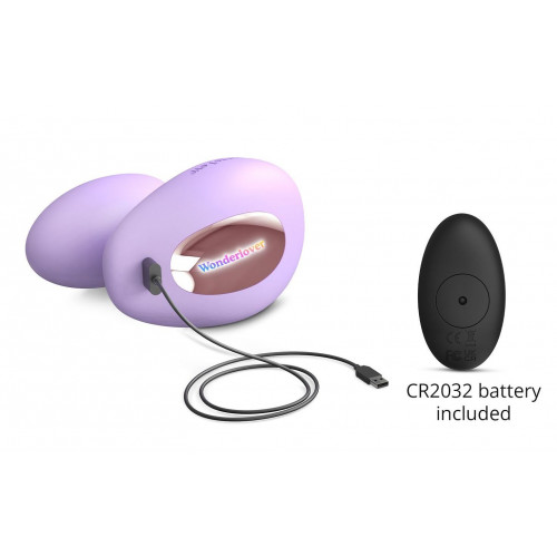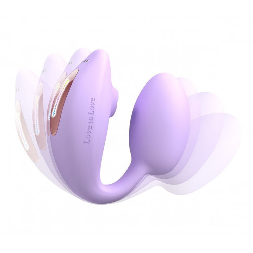 Двойной стимулятор точки G и клитора с имитацией оральных ласк и дистанционным управлением с пульта Wonderlover. Вибрирующее погружное яйцо + силиконовый «лепесток», покрывающий вульву и в нем дополнительно посасывающая стимуляция в области головки клитора.