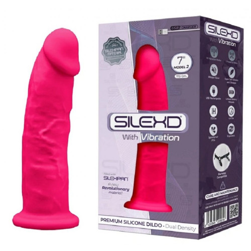 SileXD Вибростимулятор реалистик на присоске Model 2 7 Adrien Lastic с наполнителем Silexpan и внутренним твердым сердечником с сверхмягкой силиконовой оболочкой. Перезаряжаемый, имеет 10 режимов вибрации. Его наполнение из запатентованного материала Silexpan обеспечивает большую гибкость, чрезвычайно реалистичное ощущение и ни с чем не сравнимое удовольствие. В основании присоска, позволяющая закрепить фаллос на любую плоскую и гладкую поверхность. Может использоваться, как насадка для страпона , вибрация только добавит больше ощущений! Цвет фуксия. Размер: общая длина 17,5 см, рабочая длина 16 см, диаметр у основания 4,2 см, диаметр головки 3,8 см. Для более комфортного использования рекомендуем приобрести смазку на водной основе и очищающий спрей Clear Toy 100 мл для обработки изделия.