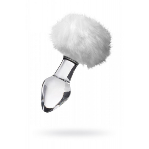 Втулка анальная стеклянная с белым хвостиком 8 см