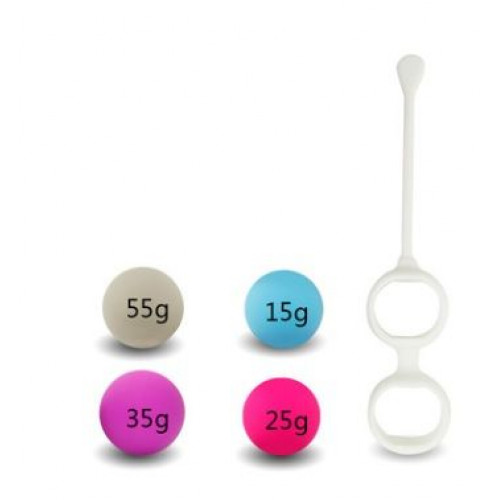 Вагинальные шарики со смещенным центром тяжести для тренировки интимных мышц и массажным эффектом (в упаковке 4 шт. разных цветов). Вагинальные шарики используют для сексуального удовольствия. Петля позволяет легко извлекать шарики. Вес шариков - 15, 25, 35 и 55 гр.
