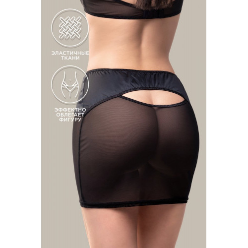 Линия провокационного эротического белья Waname Apparel – для женщин, которые хотят наслаждения и не скрывают этого. Юбка из тонкой прозрачной эластичной сетки и стрейч-сатина облегает бедра, ощущается невесомой, не сковывают движений, но визуально меняет силуэт. Шелковистая поверхность материала дарит приятные ощущения при прикосновении. Современные элементы дизайна тешат женское самолюбие. Матовая кокетка и аккуратный вырез сзади подчеркивают движение бедер при каждом шаге. Провокационная длина слегка прикрывает ягодицы. Интимные зоны, закрытые для прикосновений, но доступные взгляду подчеркивают чувственность образа. Модели белья Waname Apparel эксклюзивны, разработаны и произведены в России с учетом предпочтений российских покупательниц. Размер: 46-48. Цвет: черный.