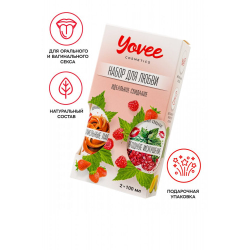 ;Набор для любви; от бренда Yovee идеально подходит для эротических экспериментов. В одной упаковке два съедобных геля на водной основе. Используйте самостоятельно или создайте свой вкус, смешивая их! Несмотря на сладость, гели не содержат сахара в составе, не нарушают микрофлору и pH-баланс. Подходят как для вагинального, так и для орального секса. Совместимы со всеми видами презервативов и игрушек для взрослых. Вкус: карамель, малина и мята.