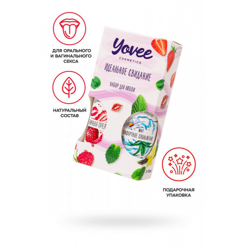 Набор для любви от бренда Yovee идеально подходит для эротических экспериментов. Входящий в набор съедобный интимный гель с соблазнительным вкусом и ароматом спелой клубники придаст оральному сексу еще больше пикантности и удовольствия, а увлажняющий интимный гель-смазка с алоэ и ромашкой обеспечит долгое скольжение, увлажение и смягчение слизистой при вагинальном сексе. Используйте самостоятельно или смешайте гели, чтобы сделать вкус десерта менее сладким! Оба геля подходят как для вагинального, так и для орального секса. Совместимы со всеми видами презервативов и игрушек для взрослых. Все гели Yovee имеют простой и безопасный состав: вода; гидроксиэтилцеллюлоза стабилизатор эмульсий, регулятор вязкости. Д-пантенол защищает слизистые, запускает процесс регенерации тканей. Сорбат калия и бензоат натрия безопасные пищевые консерванты, разрешенные в натуральной и органической косметике. Лимонная кислота помогает поддерживать оптимальный уровень рН, является естественным консервантом. Объем: 2 флакона по 100 мл.