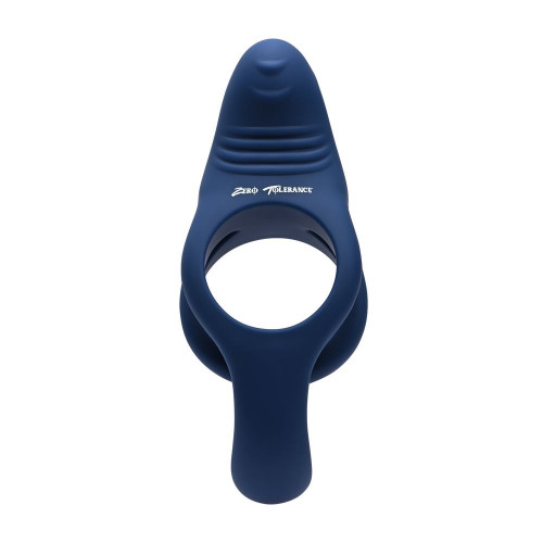 Синее эрекционное виброкольцо с двойным подхватом мошонки Ring Around The Rosy