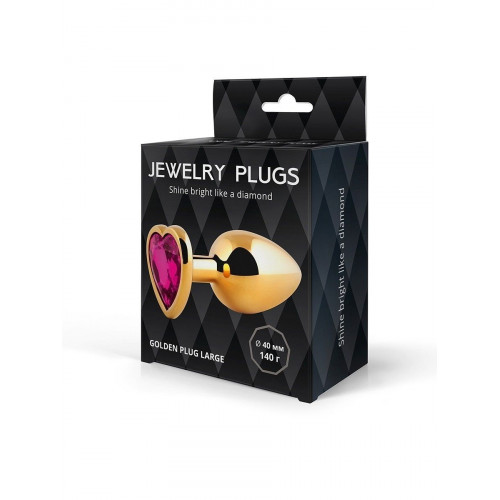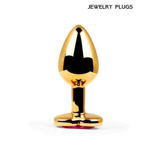 Золотистая анальная пробка с малиновым кристаллом - 9 см.
